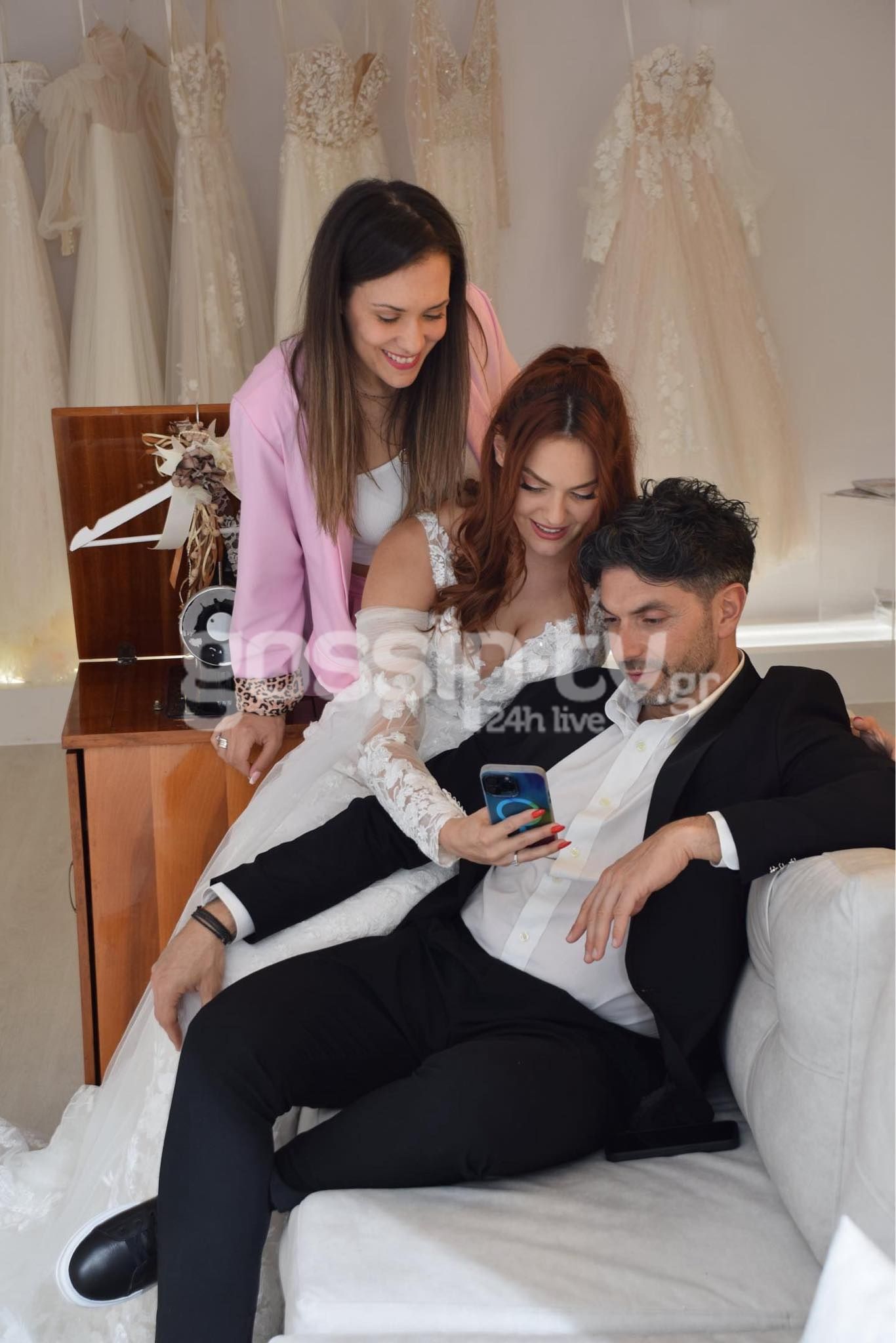 Η Μαρία Θεοδωρίδου, τους υποδέχτηκε στο ατελιέ της και εκείνοι έδειχναν χαρούμενοι και ανυπόμονοι για την πιο σημαντική μέρα της ζωής τους, στην οποία θέλουν να είναι όλα τέλεια, γι’ αυτό προετοιμάζουν και την παραμικρή λεπτομέρεια.
