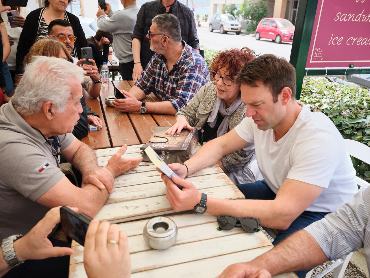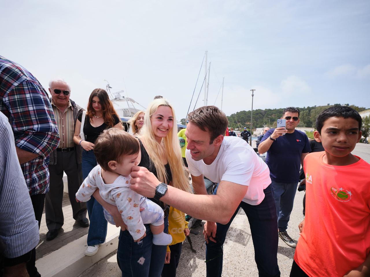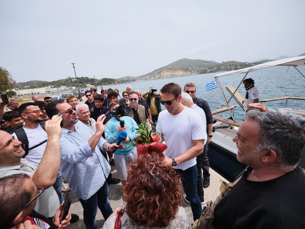 Οι κάτοικοι του επιφύλαξαν θερμή υποδοχή κατά την άφιξή του στο ακριτικό νησί, όταν έφτασε στο λιμάνι.